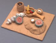 田舎風のご飯を作りたくて、木紛粘土での食器つくりをしてみました。いい味でてるよなあと思ったのですが、いかがですか?