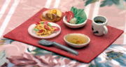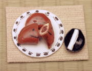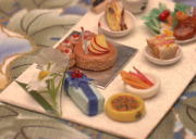 この作品も作っててとっても楽しかった1つ。うちのワンちゃんの好きなものばかり取り揃えました。彼(オス)はケーキもパンも大好きです。